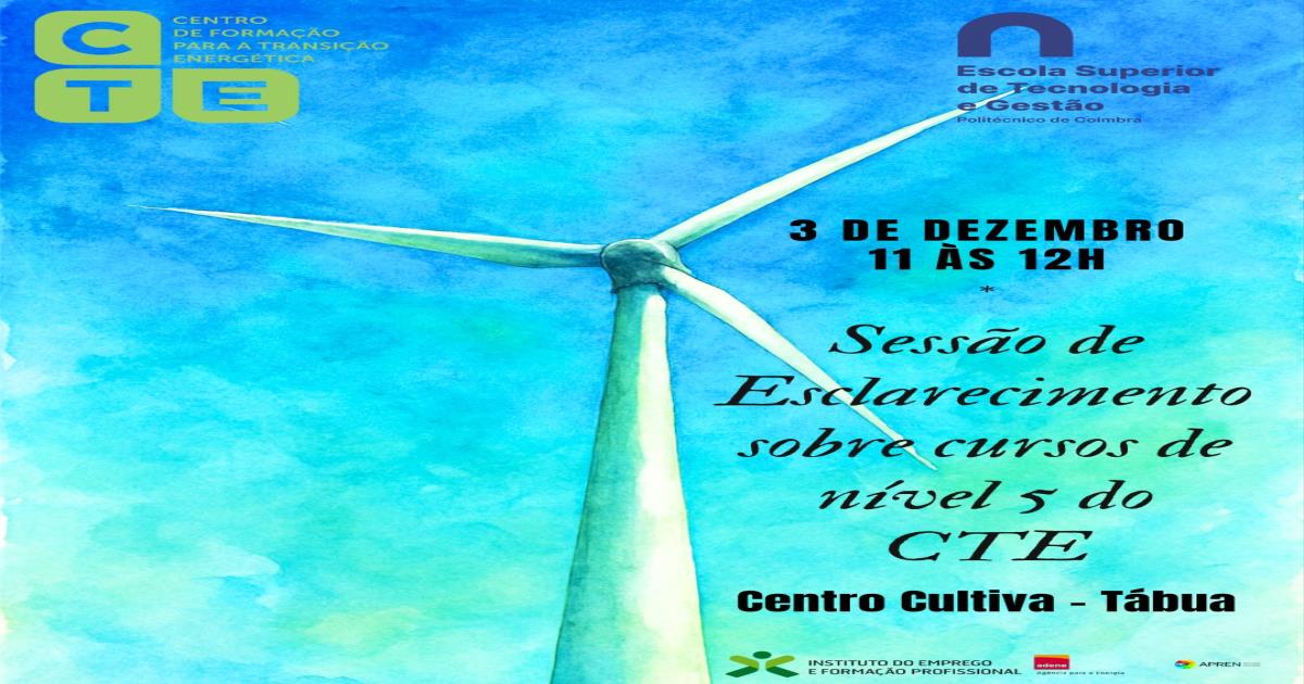 Sessão de esclarecimento sobre cursos de nível 5, dia 03 de dezembro, entre as 11 e as 12h, no Centro Cultiva em Tábua.